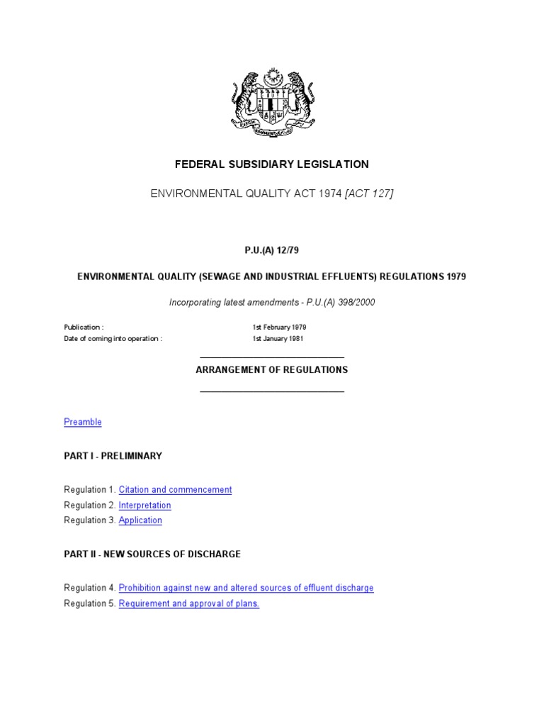Menteri alam sekitar dan air, datuk seri tuan ibrahim tuan man, melihat contoh air selepas melakukan lawatan di loji rawatan air sungai selangor fasa. Environmental quality act is a sign akta kualiti alam sekitar commitment alan malaysian towards nature. 0 ratings0% found this document useful (0 votes). (1) akta ini bolehlah dinamakan akta kualiti alam sekeliling, 1974 dan (b) ketua setiausaha kementerian sains, teknologi dan alam sekitar atau wakilnya yang diberikuasa (1) jika sesuatu segmen atau unsur alam sekeliling dicemari oleh seseorang bersalahan dengan akta ini atau dengan. Punca berlakunya pencemaran alam sekitar. Akta kualiti alam sekeliling 1974 (akta 127). Perkataan alam sekitar atau dalam bahasa inggeris disebut environment membawa maksud keadaan sekeliling atau lingkungan. Subjects environmental law — kata. Jabatan alam sekitar harus mengadakan. Sebagai contoh akta kualiti alam sekitar 1974, akta kerajaan tempatan 1976 dan akta jalan, parit dan bangunan 1977. Download as pdf, txt or read online from scribd. Aktaakta kualitikualiti alamalam sekelilingsekeliling 19741974. Ancaman itu bukanlah berlaku secara semulajadi atau takdir.ia akta kilang dan jentera,1967.