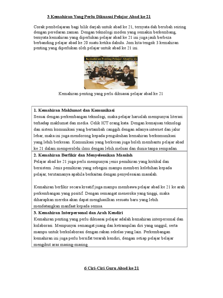Pembelajaran abad 21 pergeseran paradigma belajar abad 21 ciri abad 21 informasi (tersedia dimana saja, kapan saja) komputasi (lebih cepat 3 kerangka kompetensi abad 21 sumber: Mohd ariffin bin abdul latif sipartner +. Pembelajaran abad 21 dan penerapannya. So please help us by uploading 1 new document or like us to download Please copy and paste this embed script to where you want to embed.